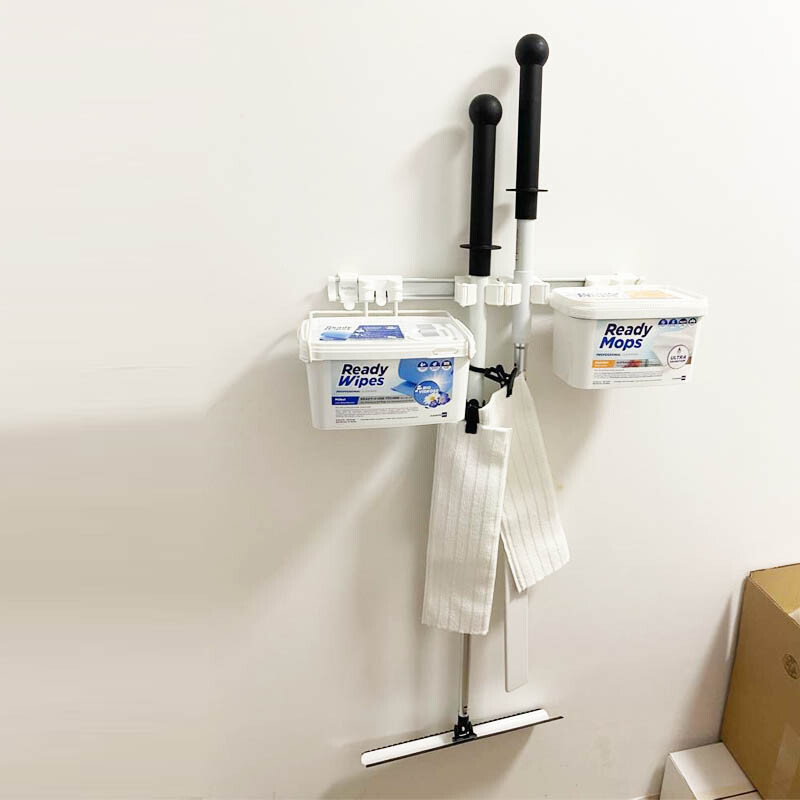 Der Moppstiel-Halter kann Stieldurchmesser von 15-35 mm in einer einzigen Universalhalterung fassen. Hier können unterschiedlichste Reinigungsgeräte, wie Besen, Moppstiele etc. an der Wand befestigt werden. Das offene hygienische Design und die glatte Oberfläche der Halterung ermöglichen eine einfache Reinigung.