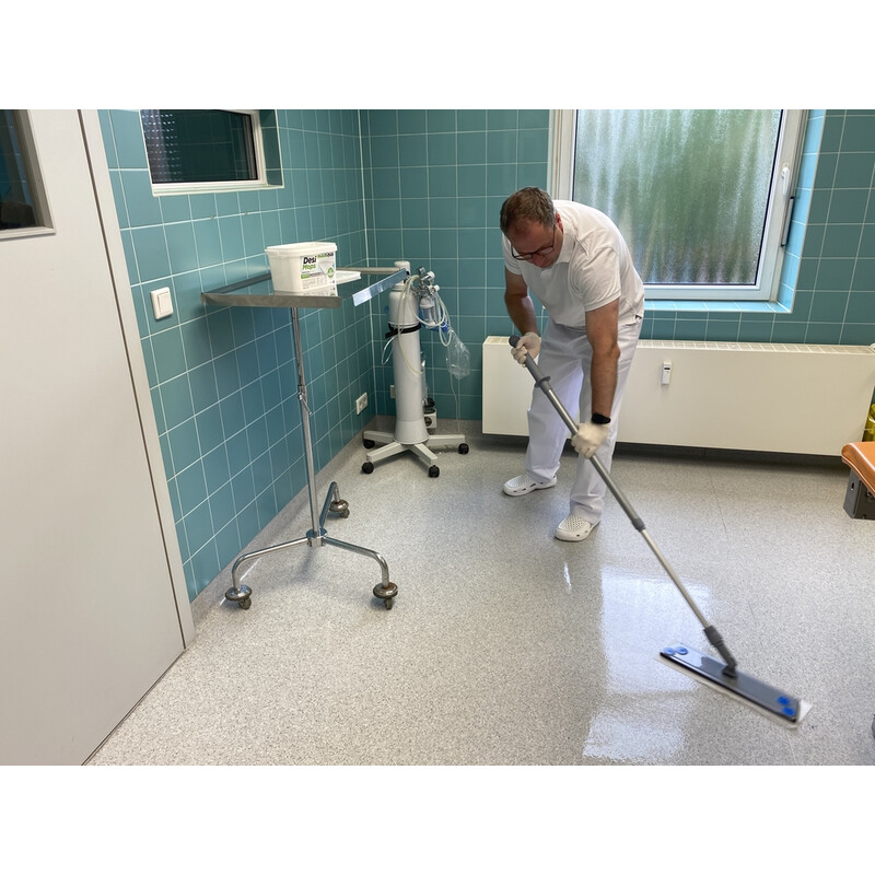 Gebrauchsfertige Einmal-Mopps zur Desinfektion und Reinigung von Böden und harten Oberflächen. DesiMops Desinfektionsmopps sind umfassend wirksam: Sporizid, viruzid, bakterizid, fungizid unter hoher Belastung. Reichweite je Mopp 20 m². Desinfektionslösung aus geruchsarmer Peressigsäure ist zu 99,8 % biologisch abbaubar und kein Gefahrstoff. Die DesiMops sind VAH zugelassen und wurden nach neuesten EN-Normen getestet.