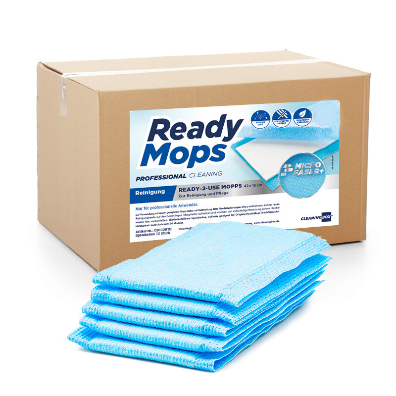 The innovative impregnable cleaning mops (disposable mops, disposable mops, disposable mops, disposable mop covers) have been specially developed for easy, fast and powerful cleaning of waterproof floors, such as tiles, laminate, parquet, PVC, stone or linoleum. They are ideal as daily or short-term covers for flexible use when access to washing facilities is limited and can be used with all cleaning methods, such as bucket, press, spray method.