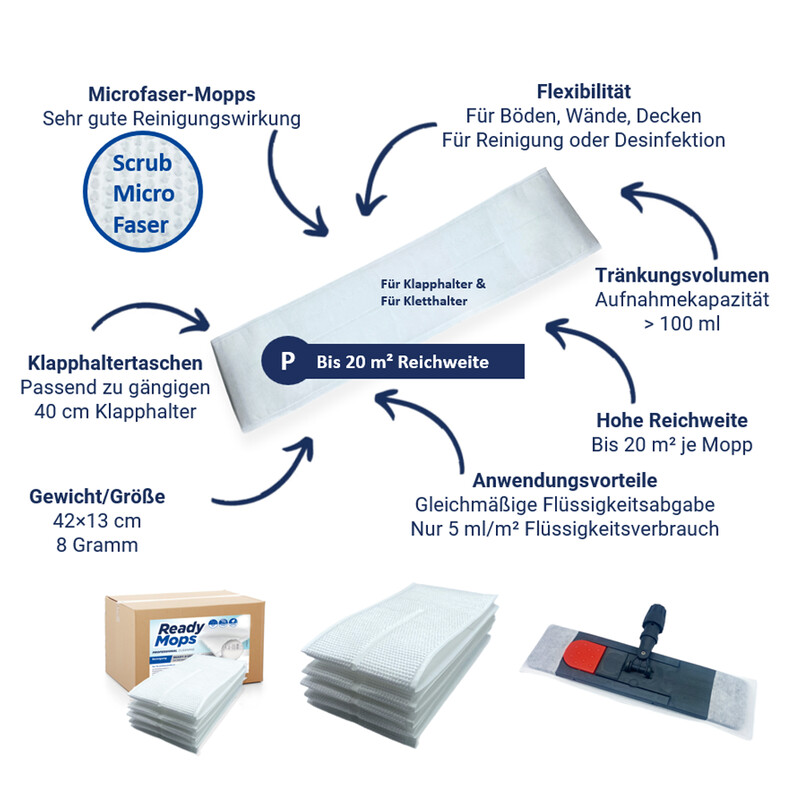 Die innovativen tränkbaren Reinigungsmopps mit Taschen für Klapphalter (Einmalmopps, Einmalmops, Einwegmopps, Einwegmops, Einmalwischbezüge) wurden speziell für die einfache, schnelle und kraftvolle Reinigung von wasserfesten Böden, wie Fliesen, Laminat, Parkett, PVC, Stein oder Linoleum entwickelt. Sie sind als Tages- oder Kurzzeitbezug ideal für die flexible Nutzung bei limitiertem Zugang zu Waschmöglichkeiten und können mit allen Reinigungsverfahren, wie Eimer, Presse, Sprühmethode eingesetzt werden.