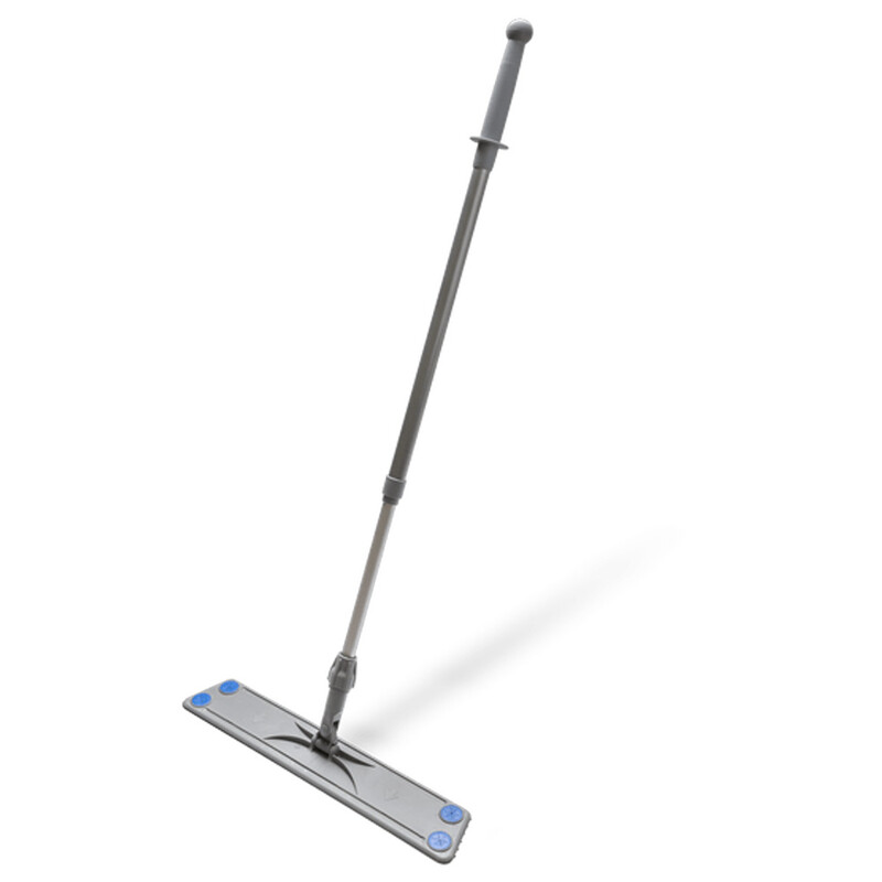 Desinfizierbarer und autoklavierbarer Mopp-Halter mit Lamellen für die Trockenreinigung in Krankenhäusern, Arztpraxen, Pflegeheimen, Laboren, Lebensmittelindustrie und anderen hygienekritischen Bereichen. Der Mopp-Halter hat eine Wischbreite von 60 cm und ist kompatibel mit allen Staubbinde-Trockenmopps.