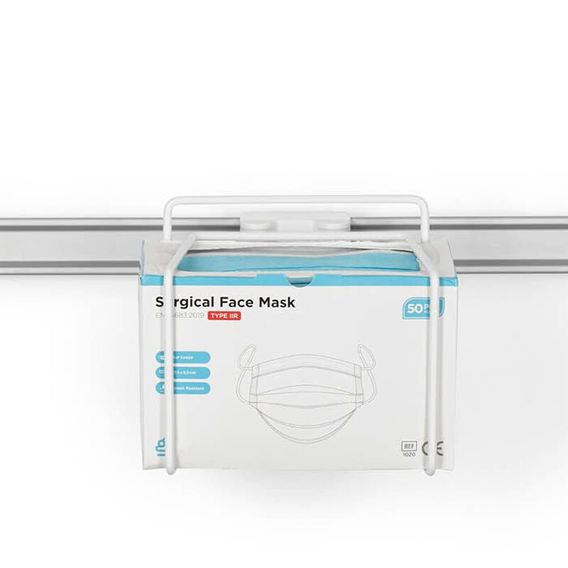 CleanStationMundschutz-Halter zur Erweiterung der CleanStation bzw. FlexiCarts. Einfach in die CleanStation Schiene einklicken. Breite: 17,0 cm, Tiefe: 16,0 cm, Höhe: 14,0 cm. Gewicht: 0,42 kg