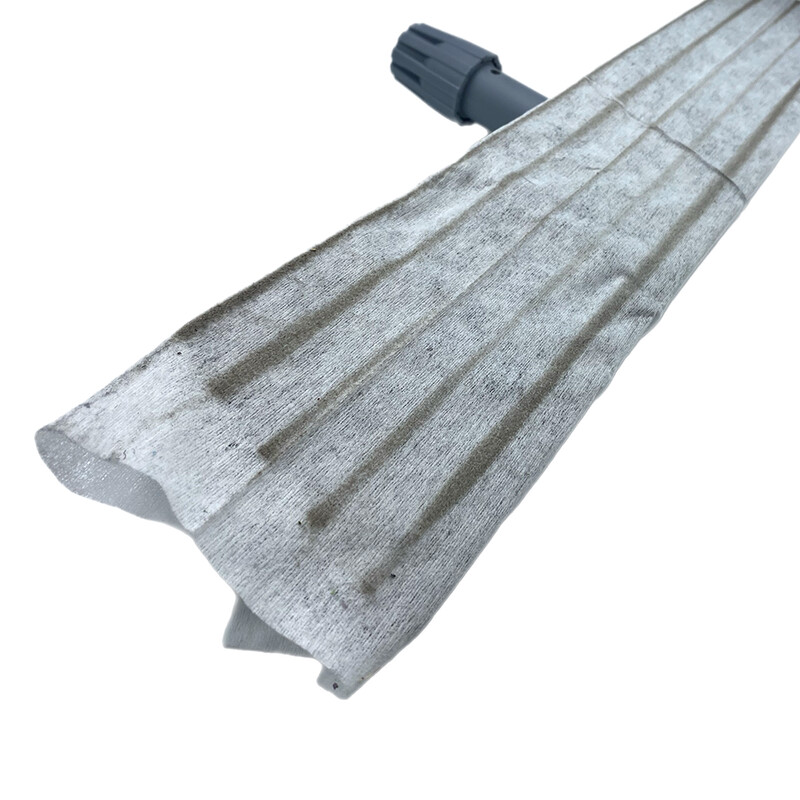 Compostable dry cleaning mops or dust binding cloths for the removal of loose dirt and dust (fine dirt, coarse dirt) on smooth floor surfaces. The dry mops are equipped with a unique, long-lasting adhesive layer that ensures that the dirt adheres better to the cloth. Due to the adhesive and the open structure of the viscose material, these dry mops have a very high dust absorption capacity. These dry mops can absorb dust, but also heavier dirt particles and small residual moisture. This adhesive layer does not dry out and remains in excellent condition for many years.